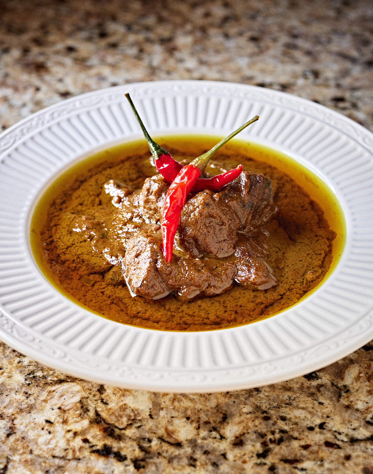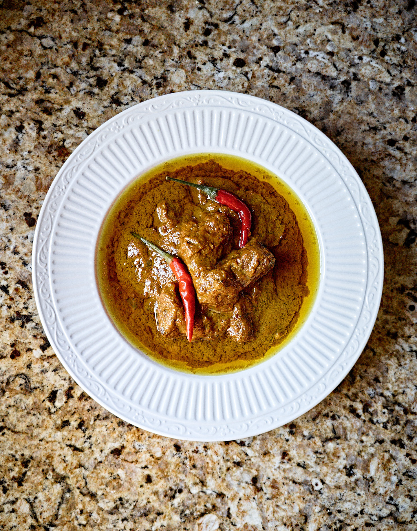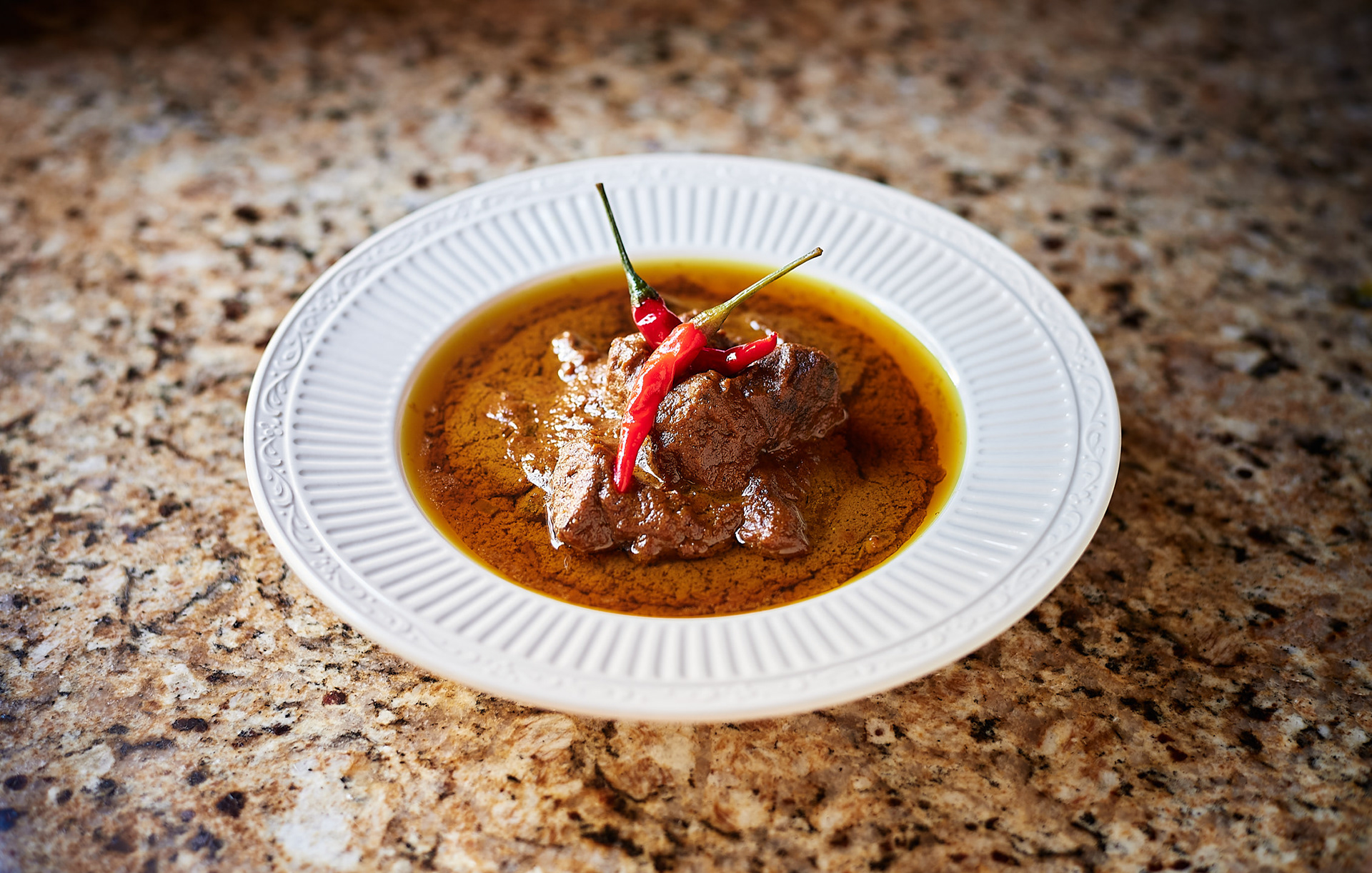Kundan Kaliya is a slow-cooked meat curry, where tender pieces of blanched mutton (or beef) are gently simmered in a rich, silken gravy built upon a base of fried onion-yogurt paste. Hand-ground spices further enhance the interplay of these ingredients. The layering of flavors, including piquant yellow chili powder, cloves, green and black cardamoms, mace, turmeric, coriander seeds, and cinnamon, creates a foundation of depth. Meanwhile, the distinctive Lazzat-e Taam—an Awadhi super masala blend with 25 ingredients—adds a khushboodar layer, imbuing the dish with an ethereal, floral fragrance, heightening its complexity.