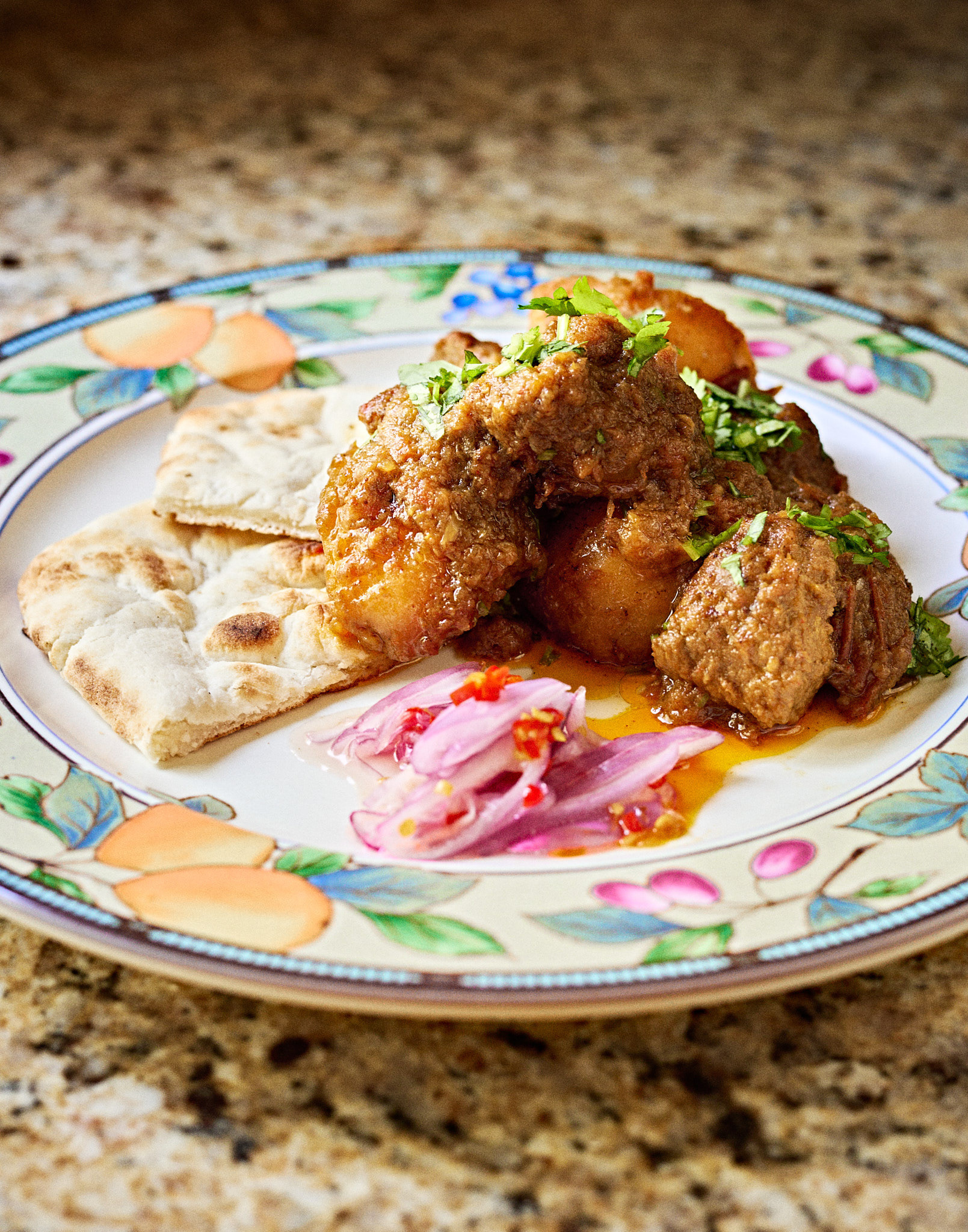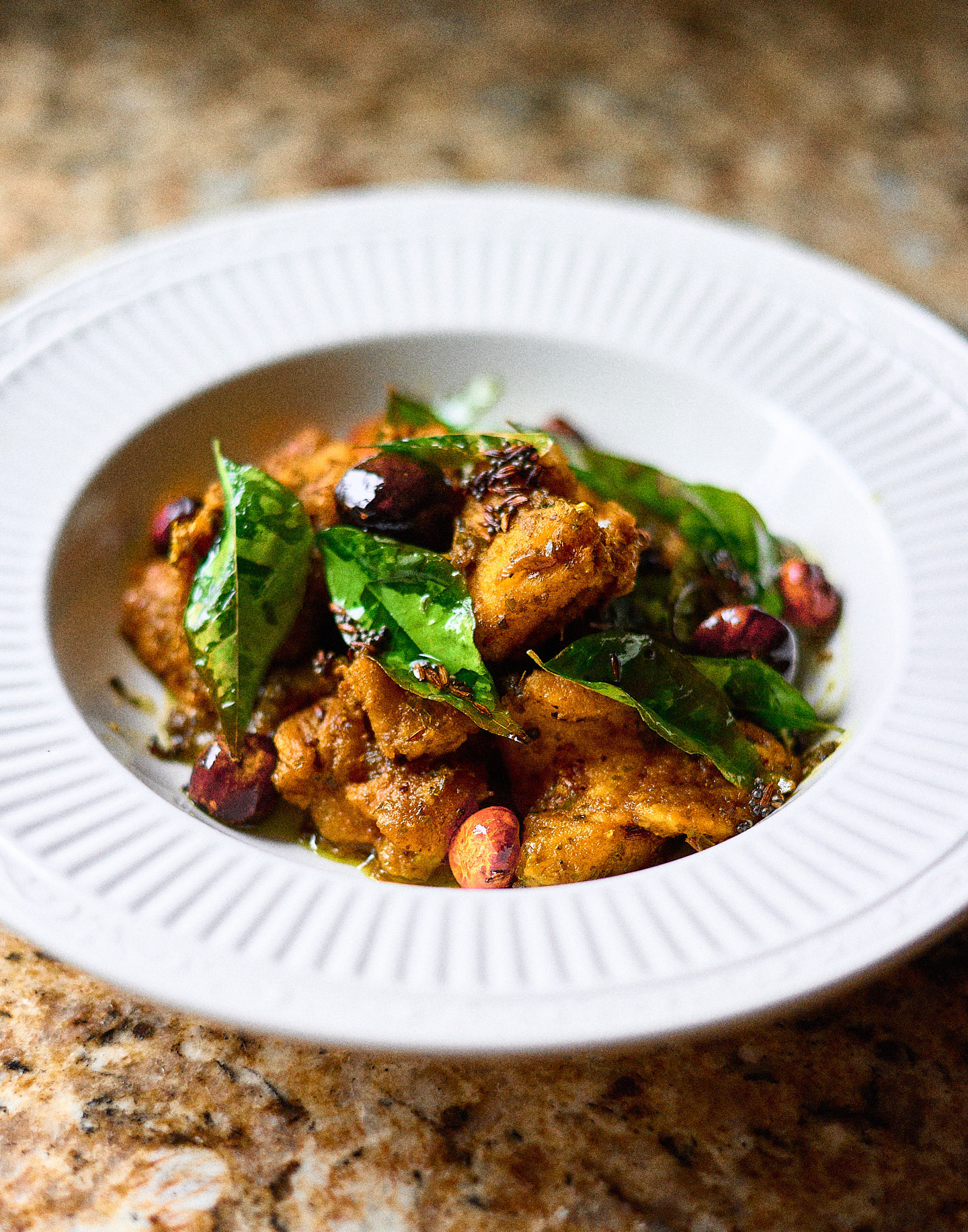 Tripuri Pork with Bamboo Shoot tastes remarkably similar to our Burmese Pork Sibyan (ဝက်သားဆီပြန်), and it's definitely going into my regional Indian cooking menu rotation. Pork tenderloin is bhunaoed in a bed of browned, sautéed onions, enriched with the fragrant aromas of ginger-garlic paste and Serrano peppers. Once the base flavors have matured, sliced bamboo shoots are added and simmered until everything melds into a deeply savory finish.